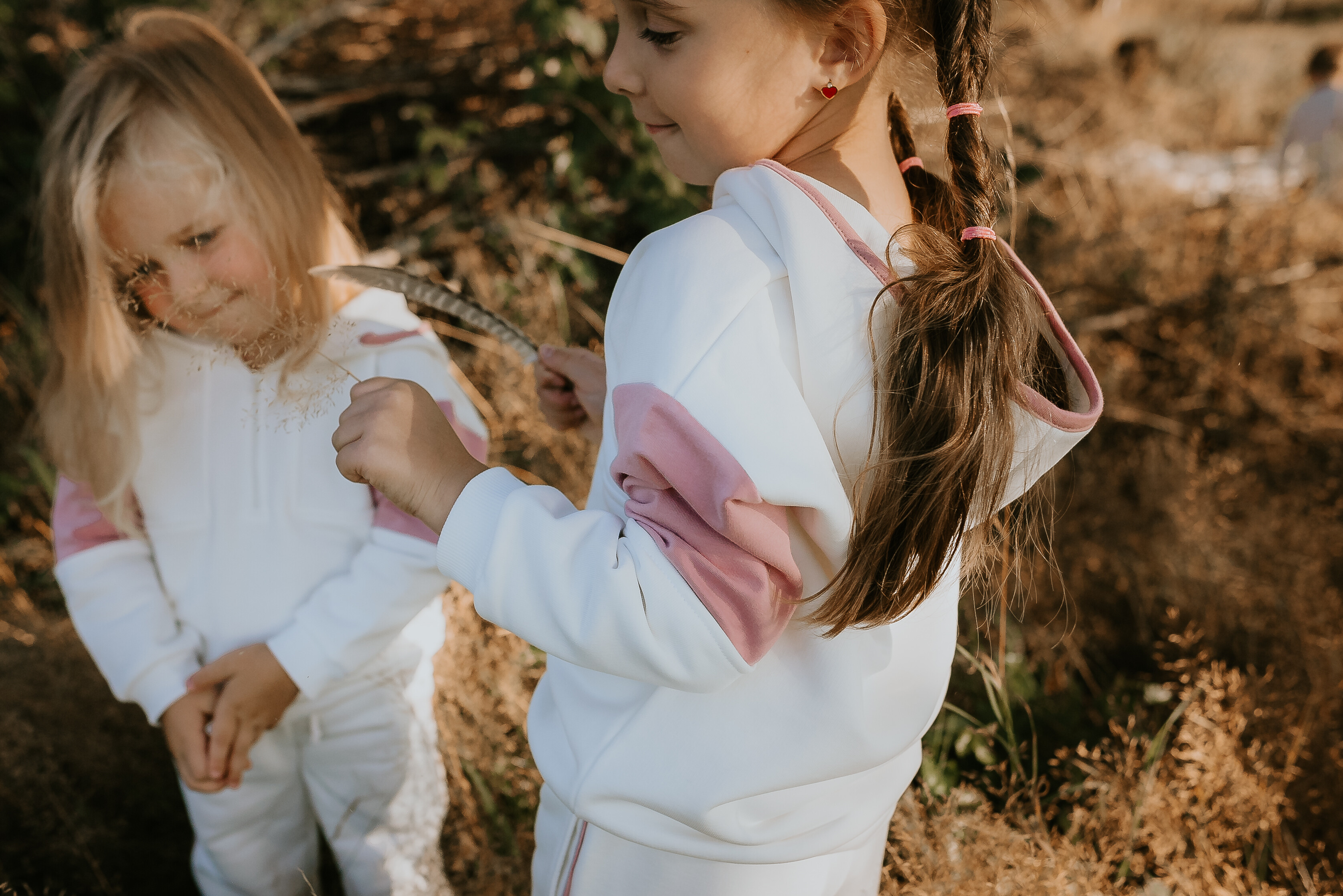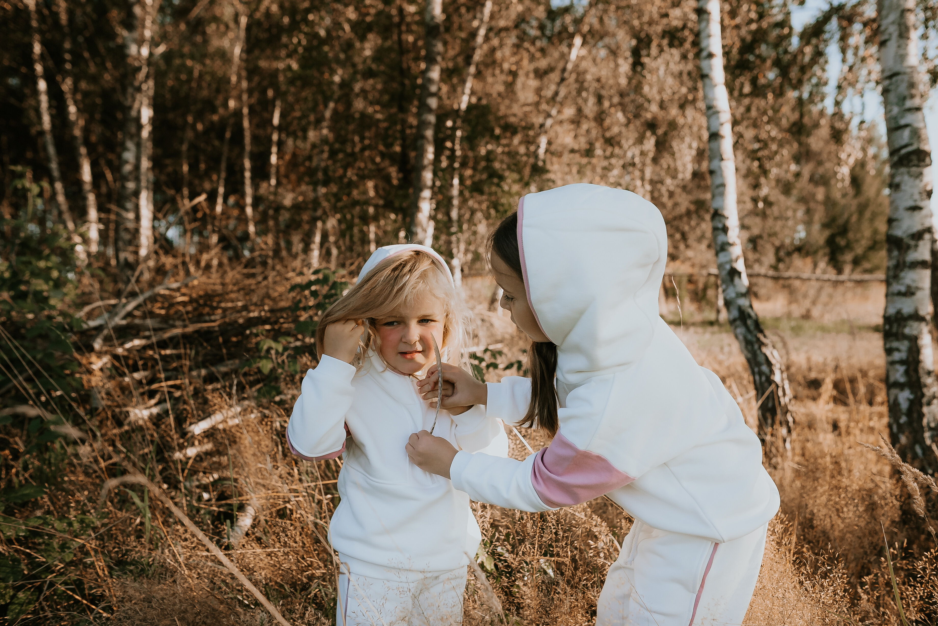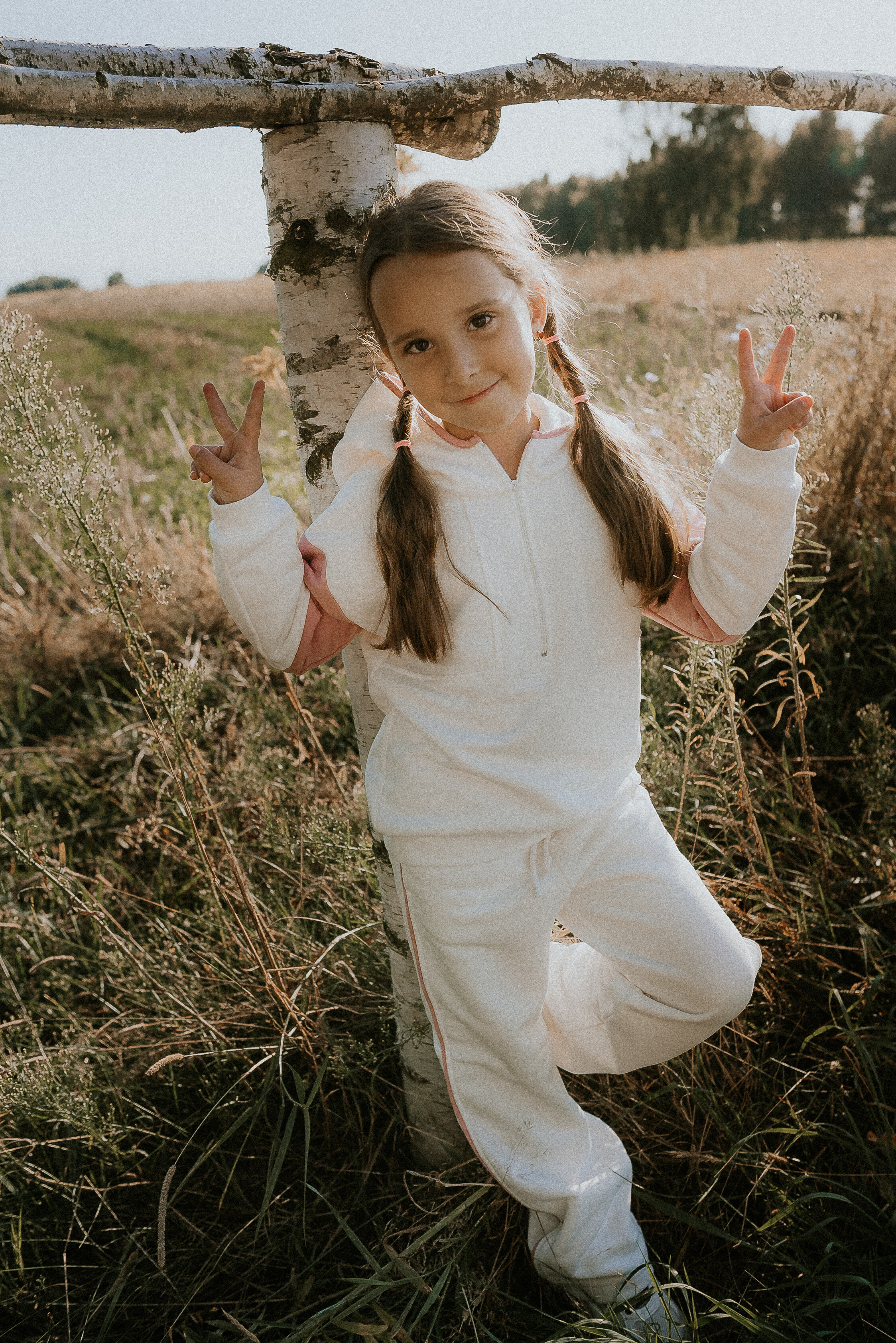 Bluza dresowa z kapturem i suwakiem. Wykończona ściągaczami i ozdobną lamówką. Kieszeń typu kangur.