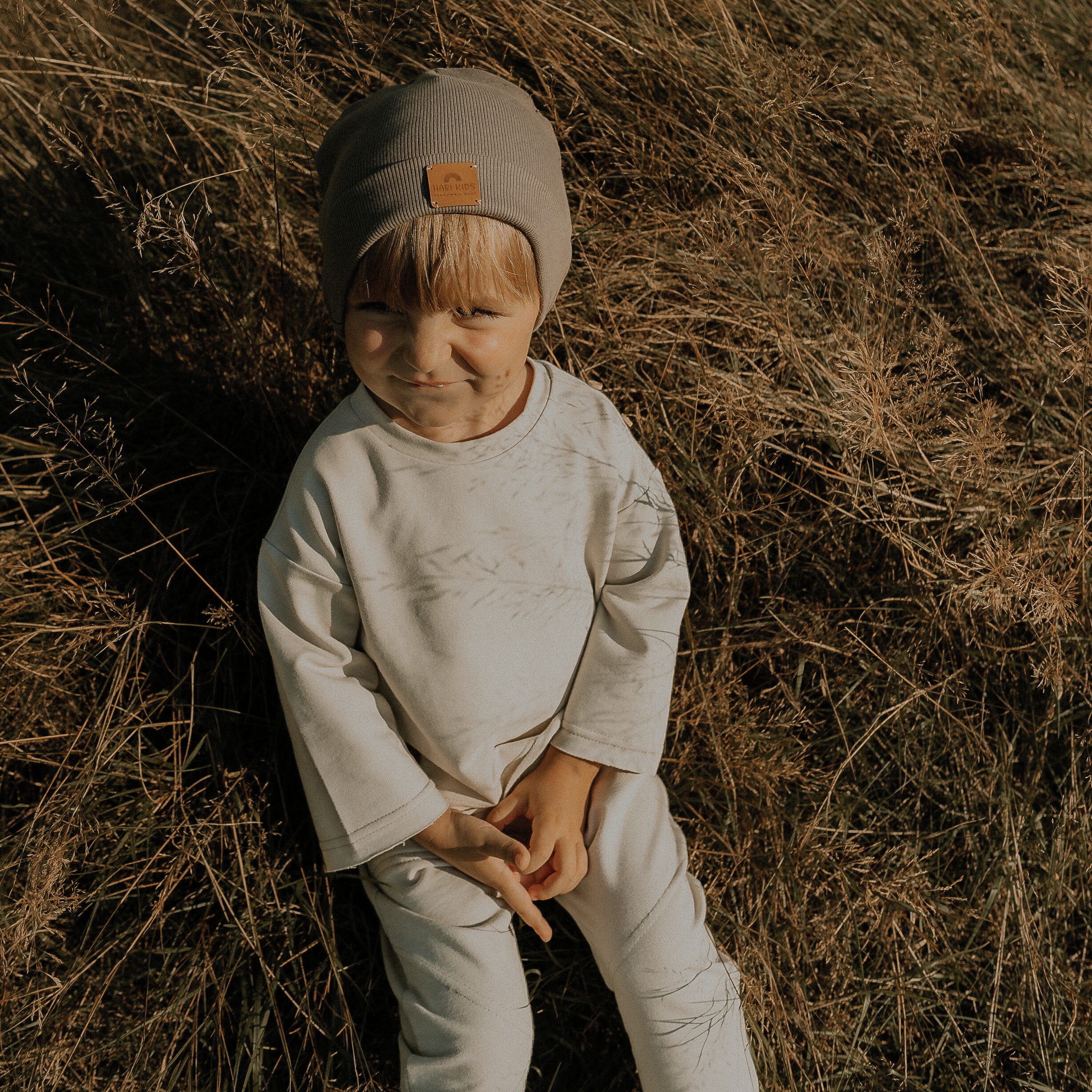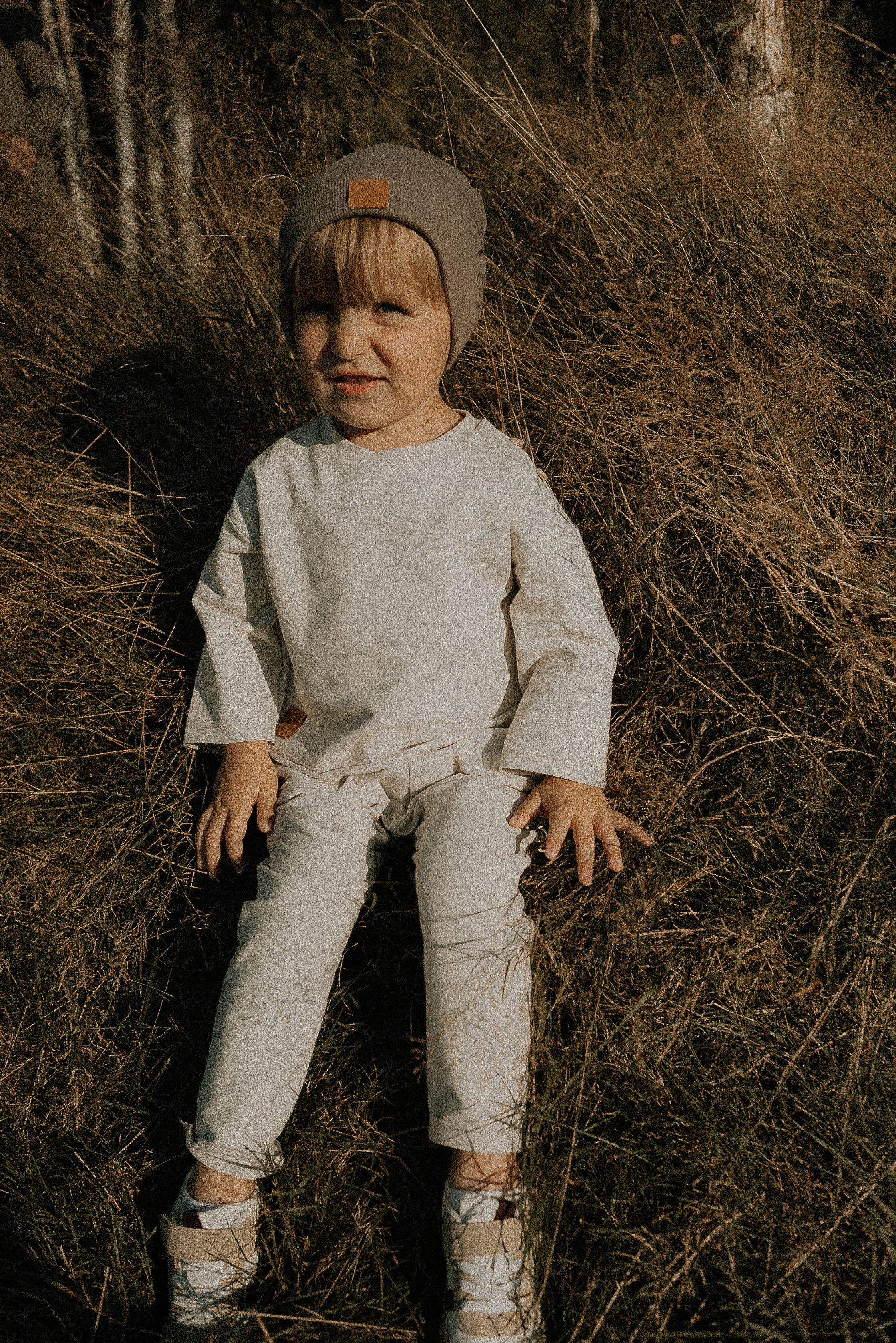 Bluzka oversize w kolorze beż. Poszerzone raglanowe rękawki. Wykończenie rękawków oraz dołu na surowo.